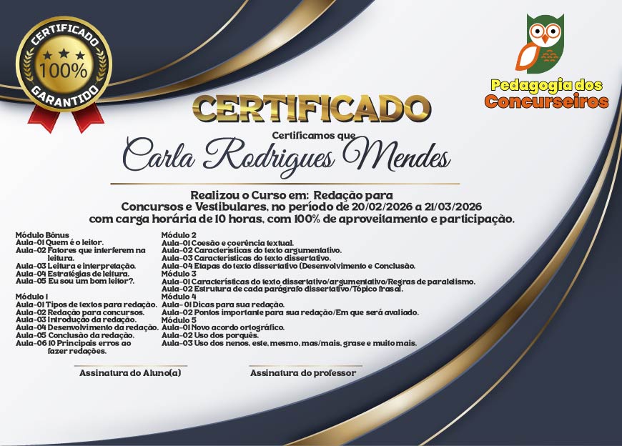 Pra quem é o curso: O nosso curso reúne mais de 21 aulas cuidadosamente planejadas para cobrir os conteúdos mais cobrados nos concursos públicos. Você vai estudar desde gramática e interpretação de textos até os pontos que mais geram dúvida, como regência e pontuação. Esse material é perfeito tanto para quem está começando agora a estudar para concursos públicos.